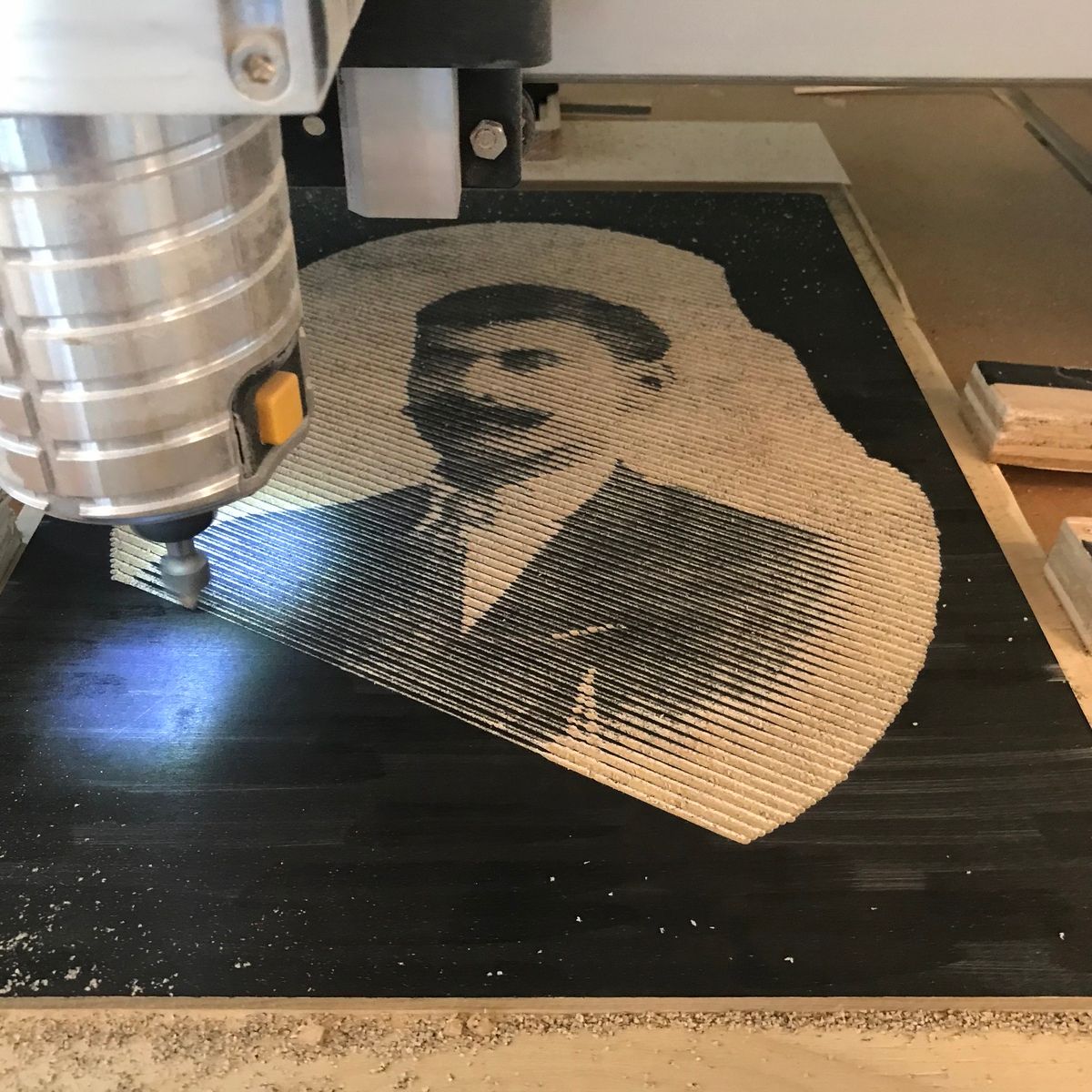 Alexis: Well, right now it's the CNC machine. Computer Numerical Control. Instead of doing things by hand, I make a digital file and go to the wood shop and get it carved. I do a lot of hand carving, but while I'm carving one block the CNC can carve another. So instead of having two or three carvings in a day, I can finish up to twenty. I can work faster, and I can bring more ideas to life.