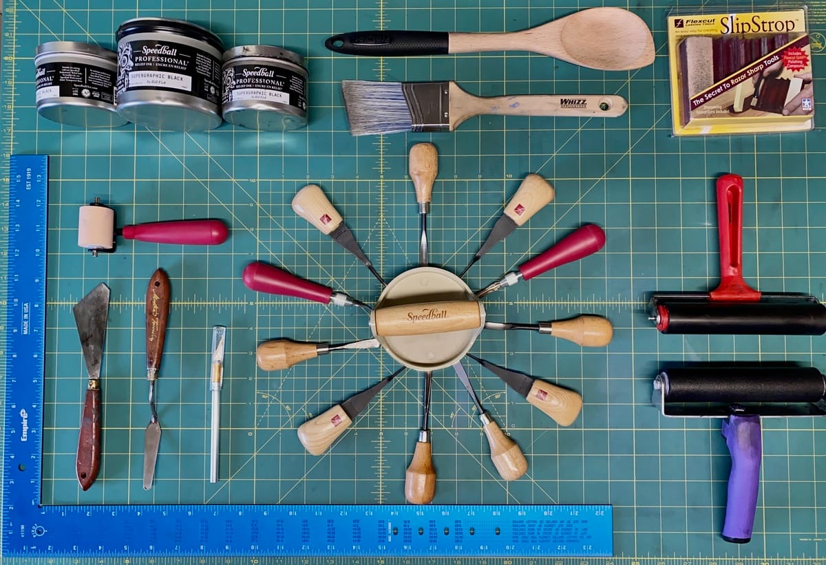 This week, I decided to curate a few lists with my recommended ‘Printmaking Kits.’ I mention them as kits with some liberty. They are not actual kits but a list of tools and materials I use and recommend.