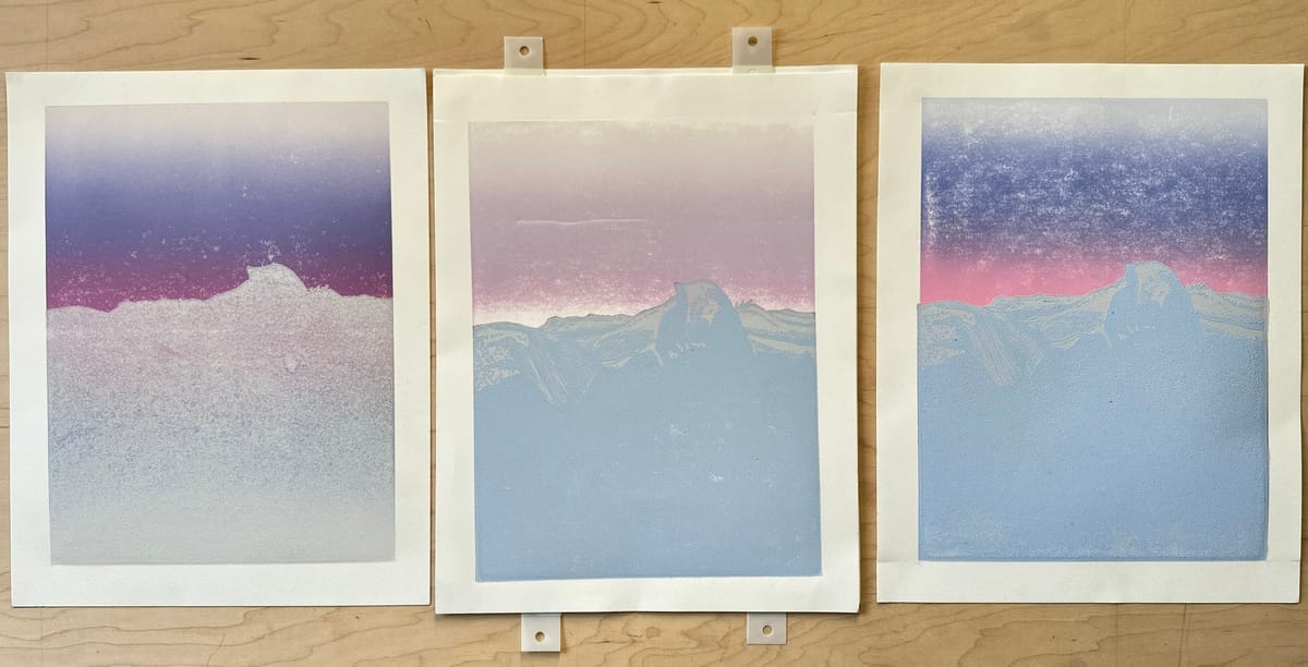 So far with this Glacier Point print I have loved the variation of sky colors, and how subtle the change from layer two to layer three has been. Another big thing to keep in mind while working is keeping an eye on your registration!