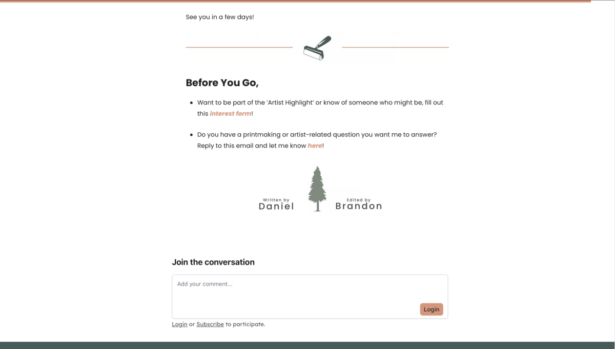 Do you have a printmaking or artist-related question you want me to answer? Reply to this email and let me know here!
