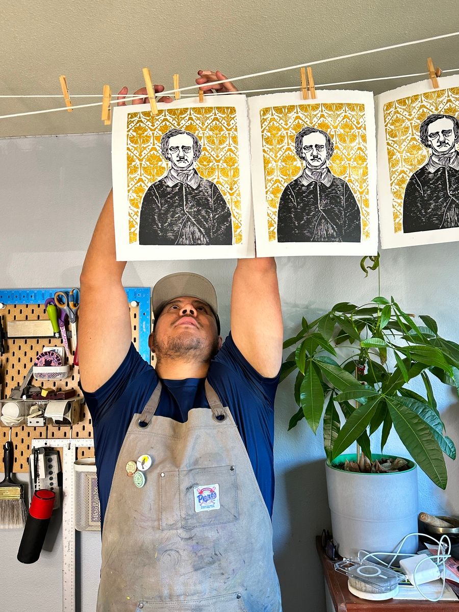 Printmaking for me was the thing that made me stand out locally. It took some education. People hear prints and they automatically assume it's a digital product. I seriously once had a customer ask me “Can you email me this one, so I can print it at home?” Looking on the bright side it was a great moment to share with her the craft of relief printmaking. The customer was very open and receptive to my explanation and she walked away not having bought anything. Sometimes it's like that.